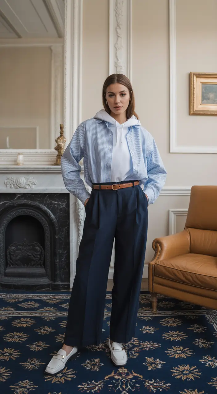 Stylists often talk about proportion play as the secret to elevated dressing — fitted on top, voluminous on the bottom. This look embodies that idea perfectly. The trousers lengthen the legs, the bodysuit defines the shoulders, and the belt ties everything together with clean structure.